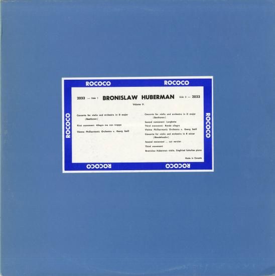 B.フーベルマン(vn)G.セル指揮ウィーンpo.(ベートーヴェン),S.シュルツ(pf)