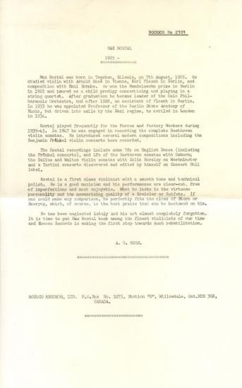 M.ロスタル(vn)H.シュレーダー,B.ザイドラー・ヴィンクラー,E.フーバー(pf)/E.シュミット指揮ベロミュンステル放送o.