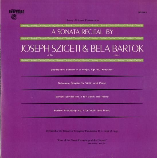 ワシントン国会図書館ライブ/ヴァイオリン・ソナタ集/ベートーヴェン:9番「クロイツェル」,ドビュッシー,バルトーク:2番,狂詩曲1番