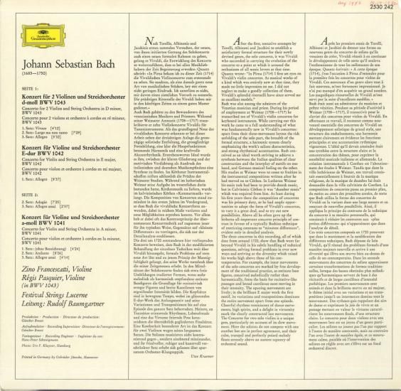バッハ:2つのヴァイオリンのための協奏曲BWV.1043,ヴァイオリン協奏曲BWV.1041,1042