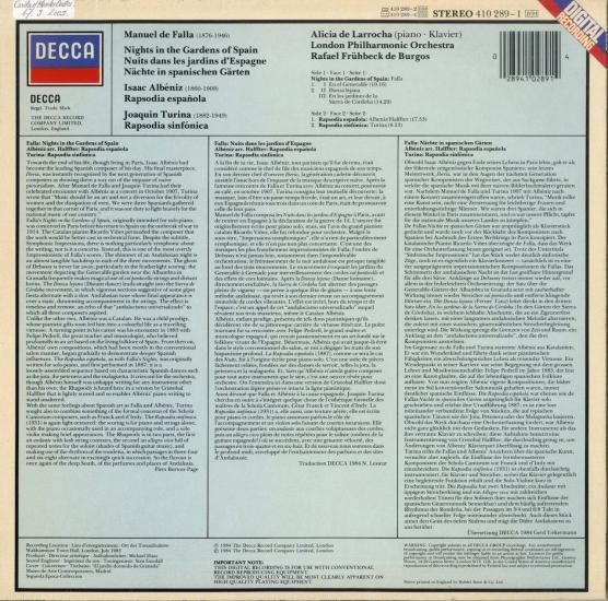 A.d.ラローチャ(pf)R.フリューベック・デ・ブルゴス指揮ロンドンpo.